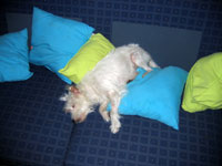 Minstens. En dan hebben ze dat rare spel gespeeld in mijn afwezigheid. Die bank is de hondenbank. En alleen Kwint verhaart. Genoeg voor twee, jammer genoeg.