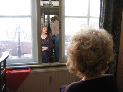 De moeder van een klasgenoot van Saar werd vandaag door weer een andere moeder in een gelukkige huisvrouw uit de fifties veranderd. De moeder van Saar fotografeerde dat. Er moet nog wat digitaal worden geplakt en geknipt, maar als het af is en het mag, dan kan je hier binnenkort het resultaat zien.