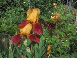 De familie B. was aan het tuinieren, dus ik begroette ze en begon een praatje over de tuin. Alles stond er weer patent bij. (Wat een merkwaardige kleur heeft die Iris!) “Kropje sla?” vroegen ze. Dat sloeg ik niet af. Vanavond maakt Saar het eten: pizza en sla uit andermans tuin.