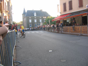 ‘s Avonds keken we naar de wielerwedstrijd, avec les g?¬¨¬©ants du tour, zoals de folder meldde. We stonden toevallig op de juiste plek toen de reclamekaravaan de cadeautjes uit de ramen begon te gooien: balpennen van onze bekende Valdipneus en petjes van Jeanroth, met onze eigen Jean-Claude als speaker. Er reed ook een auto mee met een paar jongetjes die met vertrokken gezichtjes keihard en gericht snoepjes tegen het publiek aangooiden . Dat was uitkijken geblazen.