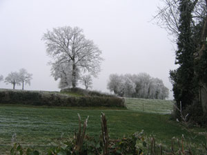 Kijk nou toch hoe mooi het hier is! Daar achter dat laatste berijpte bos boven, daar zitten wij. Heerlijk, he?