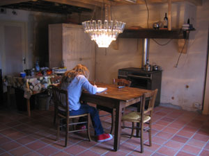 We moeten uitkijken dat het huis niet in een sauna verandert. De isolatie van onze nieuwe vloer en muur werkt. Vorig jaar hadden we de kamer verkleind door gordijnen om de trap heen te hangen, zodat de warmte niet daardoor zou verdwijnen.