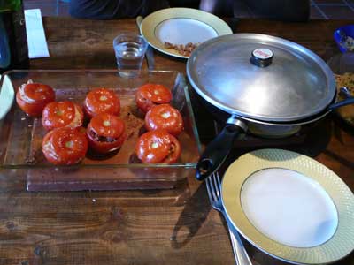 Saar had gisteren gevulde tomaten gemaakt, niet onze eigen of die van de buren, maar gewoon die van de Aldi. Met farce van onze eigen slager.