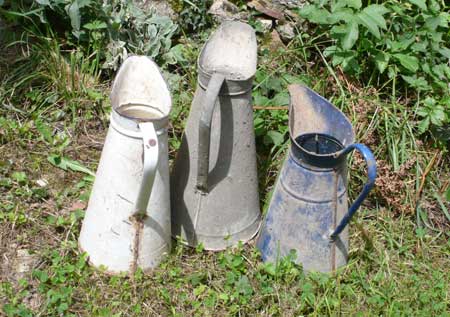 Er komen behalve de eeuwige agrarische outils d’?¬¨¬©poque, nog een paar aardige dingen te voorschijn, zoals de kannen hierboven (1 is lek) en dit erg aantrekkelijke kacheltje, dat duidelijk van dezelfde familie is als het kleine cuisini?¬¨?Üretje in de varkensstal.