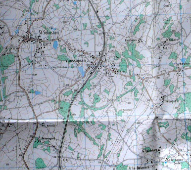 Yeva en ik zijn net terug van een 2 uur-durende paardrijtocht, die door bovenstaand gebied ging. Veel zandweggetjes, een oude spoorbaan die weer opgeruimd is, onder en over de nieuwe treinrails, razendsnel, want die paarden kunnen zich van een passerende tein een ongeluk schrikken. Er werd keihard gegaloppeerd, mijn knolletje haalde iedereen in behalve de baas – godzijdank, want hoe rem ik – en ik eindigde standaard bungelend aan de hals van mijn paard. Heerlijk was het en daarbij stormden we door een schitterend boerenlandschap, waarin allerlei antiquiteiten rondliepen, zoals een stokoud boertje met zijn zeis over zijn schouder: “Bonjour, monsieur!”.